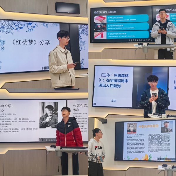 天元书院“自主阅读”读书分享会为同学们提供了一个阅读书籍,分享读书心得的平台。在分享会上,同学们可以接触到更多的优秀书籍,与志同道合的书友交流。本期自主阅读分享会共邀请了10位2025级天元书院的同学,他们分别是高一程、高伟铭、章陈、谭明宇、谭竣枫、颜旭、霍政名、王梓涵、平雨晗、叶欣瑜。这些同学分别介绍了《素履之往》《癌症传》《三体:黑暗森林》《红楼梦》《1984》《故事新编》《罗亭》《分成两半的子爵》《尤利西斯》《百年孤独》10部作品。从人文经典到科幻巨著,他们的分享或引人深思,或感人至深,给同学们带来了一场精神上的启迪。